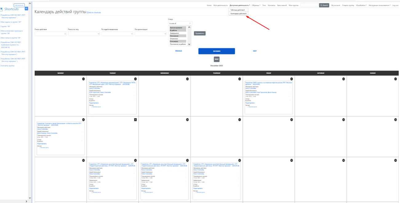 ERP.Znaem.by представляет новый апгрейд: добавлены три вида календарей для полной визуализации деятельности! Теперь управляйте задачами с календарем всех доступных действий (через главное меню), календарем группы (на странице группы) и календарем контакта (на странице контакта) — всё в удобном формате для быстрого контроля и планирования. Оптимизируйте бизнес-процессы уже сегодня на ERP.Znaem.by — платформе, созданной для устойчивости в условиях конкуренции и санкций! Ключевые преимущества: -Полный обзор: Все действия, задачи и события в одном интерфейсе — никаких пропущенных дедлайнов. -Гибкость для команд: Групповые и персональные календари ускоряют координацию в защищённой ИТ-инфраструктуре. -Интуитивный доступ: Клик по кнопке — и календарь готов, с поддержкой иерархии групп и ролей. Оптимизируйте бизнес-процессы уже сегодня на ERP.Znaem.by — платформе, созданной для устойчивости в условиях конкуренции и санкций!
